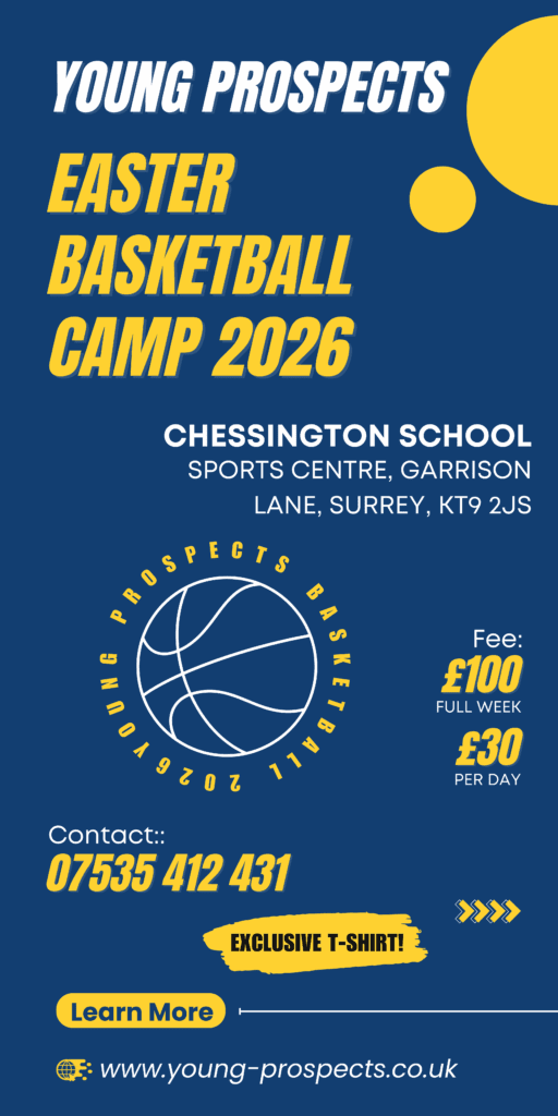 Creating sporting pathways for today's young athletes Young prospects Learn more “The interesting thing about coaching is that you have to trouble the comfortable, and comfort the troubled.” – RIC CHARLESWORTH (HOCKEY) Upcoming Events EASTER BASKETBALL CAMP 2026 DATE: MONDAY 30TH MARCH – THURSDAY 2ND APRIL 2026AGE 10 -18: 10:00AM – 4:00PM COST: £100.00 FULL WEEK OR £30 PER DAYVENUE: CHESSINGTON SPORTS CENTRE CLICK HERE TO REGISTER WANt to improve your game? Join us every Friday evening for our weekly basketball skills session. The aim is to give player of all abilities to get extra basketball tuition. Focusing on all the fundamentals:ShootingLay-upsPassing Ball HandlingDribbling FootworkDefenceRebounding Post & Perimeter PlayMoving without the Ball Learn More CHeck out our gallery Coming Soon CLICK HERE